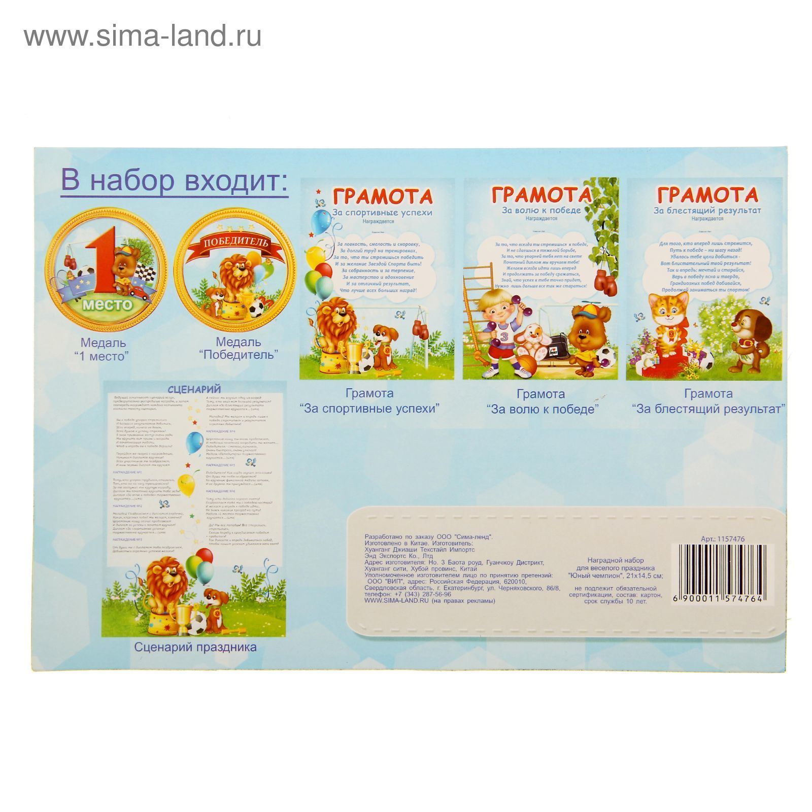 Дети обожают играть и соревноваться! Получить за победу медаль и диплом вдвойне приятно. Дома почётные награды повесят на самое видное место, чтобы все могли узнать о достижениях юного спортсмена. Наградной набор для веселого праздника "Юный чемпион" отлично дополнит проведение спортивного мероприятия.