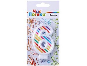 Свеча -цифра "6" Полосы разноцветные