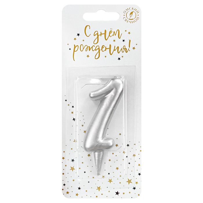 Свеча тортовая цифра "Универсальная. Серебряная" 1
