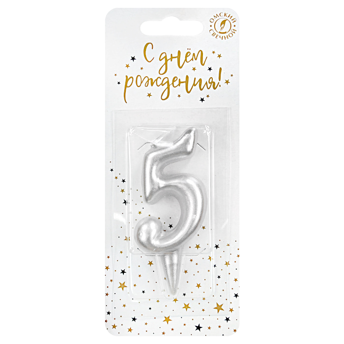 Свеча тортовая цифра "Универсальная. Серебряная" 5