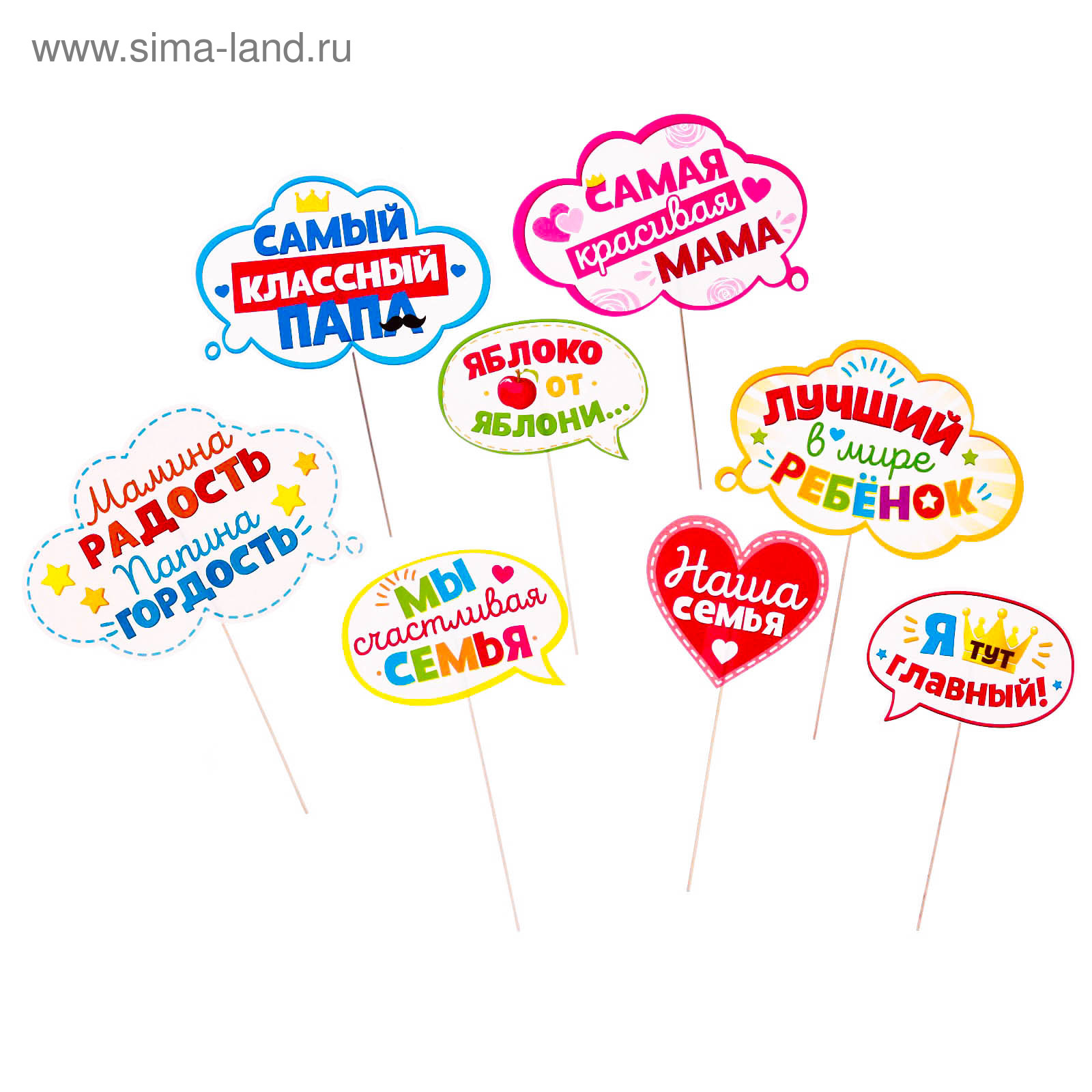Хотите сделать праздник ребёнка ярким и незабываемым? Набор фотобутафории "Семейный праздник" — незаменимый помощник в таком деле. В него входят 8 ярких тематических предметов на деревянной ножке, которые преобразят вас до неузнаваемости.