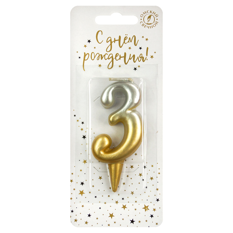 Свеча-цифра "3" Золото/Серебро