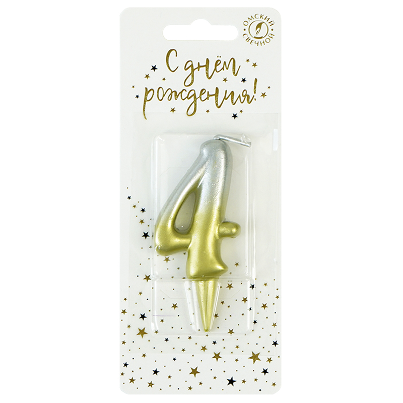Свеча-цифра "4" Золото/Серебро