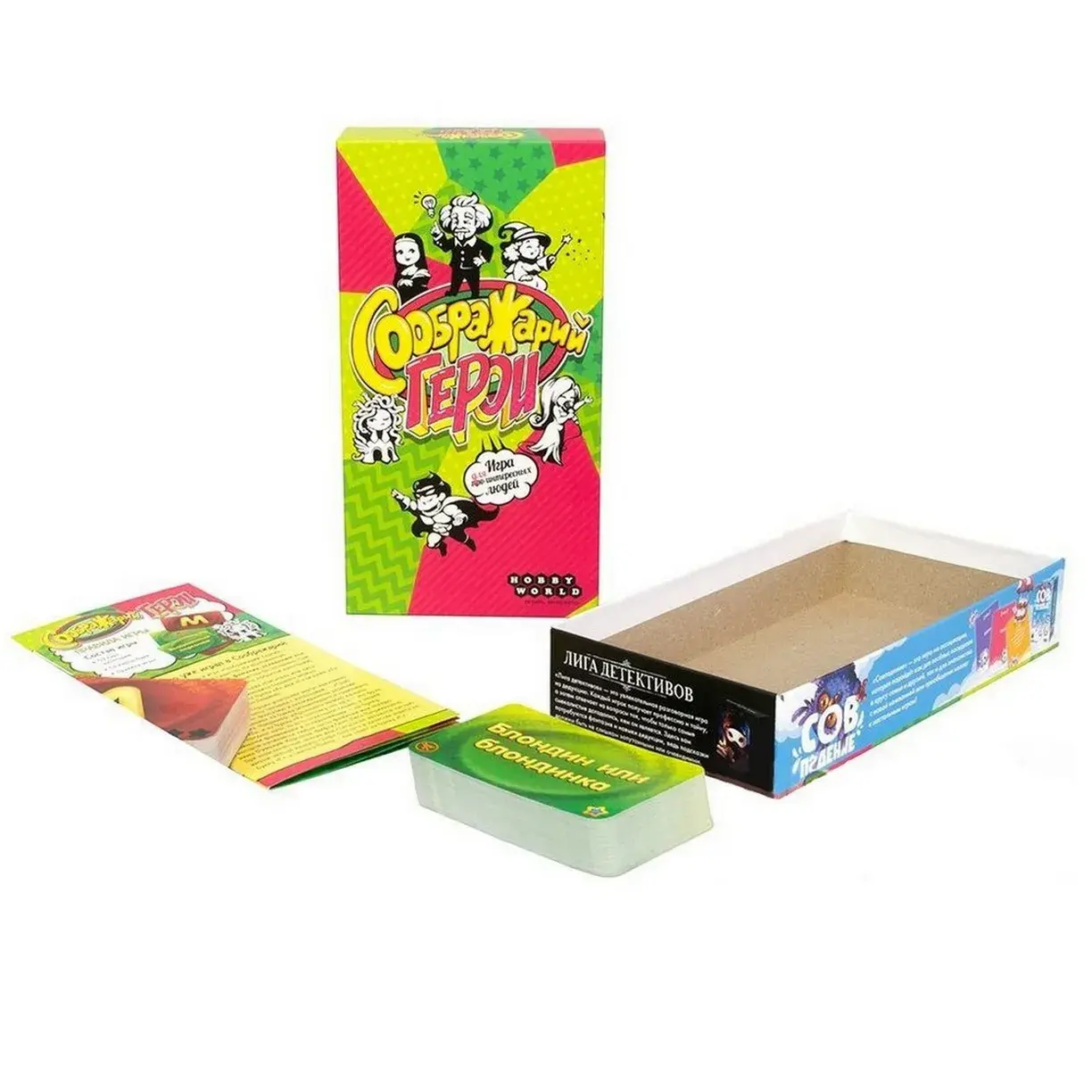 Сможете назвать путешественника на букву "Д"? А пять знаменитых брюнетов или брюнеток? А если учесть, что на всё про всё вам даётся одна минута? Да уж, тут есть над чем задуматься. Настольная игра "Соображарий: Герои" предлагает вам вспомнить различных людей, а также других существ. Это могут быть как знаменитые актёры, музыканты, писатели, поэты, так и вымышленные персонажи (сказочные, мифические, герои книг или фильмов). Кстати, правилами не запрещается называть любого знакомого вам человека, в том числе и игроков за столом, что, согласитесь, добавляет в игру ещё больше веселья.