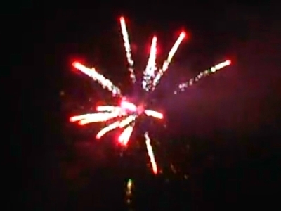 3. Красные искры с золотыми хвостами и трещащими искрами.