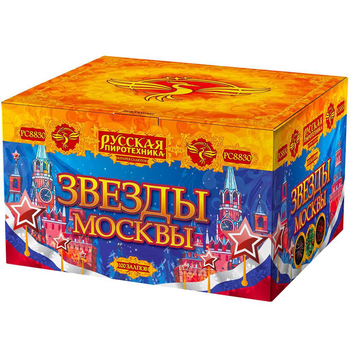 "Звезды Москвы" – настоящая сказка в небе! Разноцветные кометы, словно волшебники, рисуют причудливые узоры в ночном воздухе. Серебряные трассы превращаются в сферы белого, красного и зеленого огня с мерцающими форсами в центре, создавая ощущение праздника на каждом шагу. Особое внимание привлекает залп трещащих сфер, который наполняет атмосферу магическими звуками. Всё это великолепие длится целых 120 секунд, достигая высоты до 40 метров. Не упустите шанс подарить себе и своим близким незабываемые эмоции от этого феерического шоу!