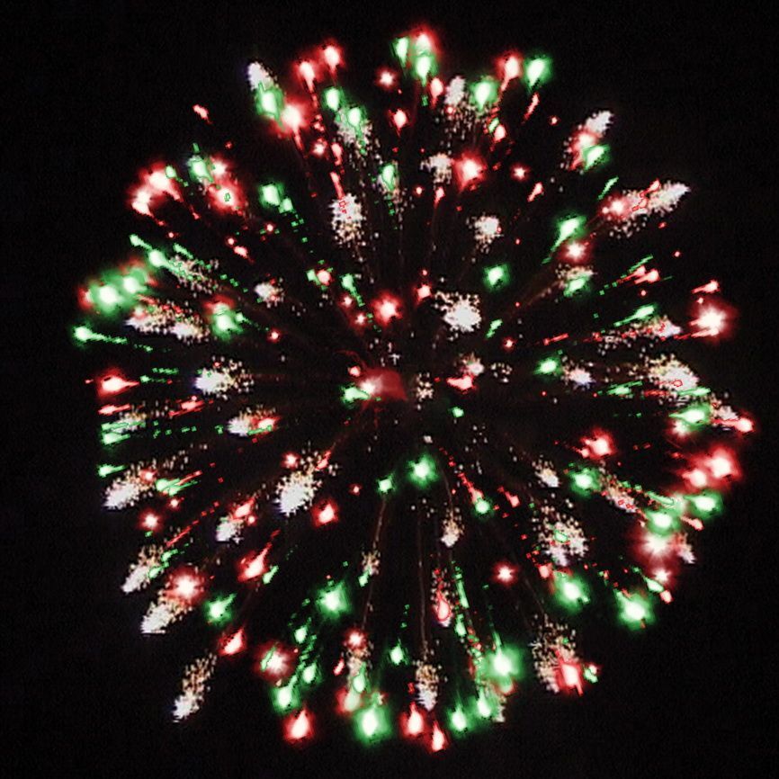 1. Форсов с серебряными трещащими искрами на концах, красных и зелёных мерцающих огней;