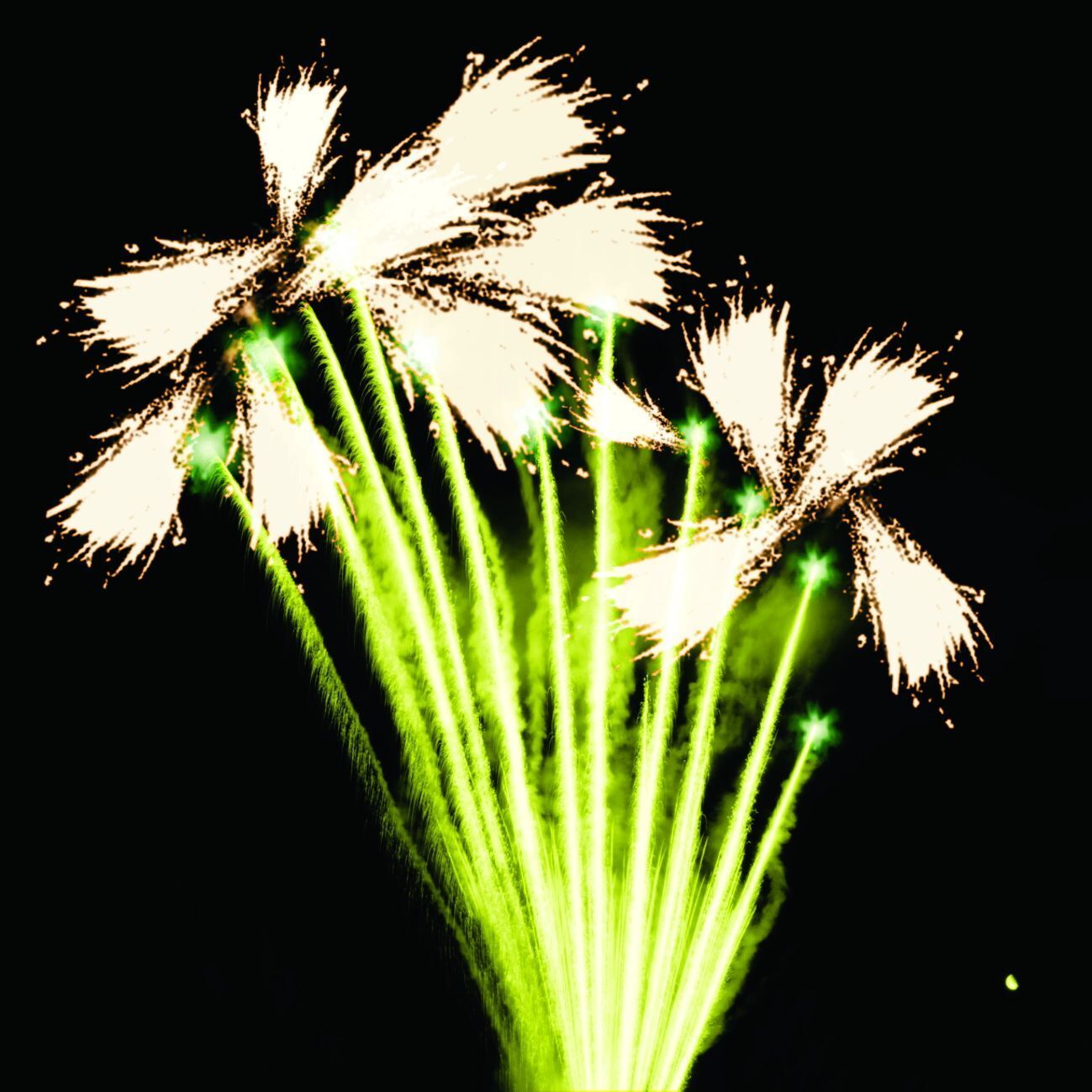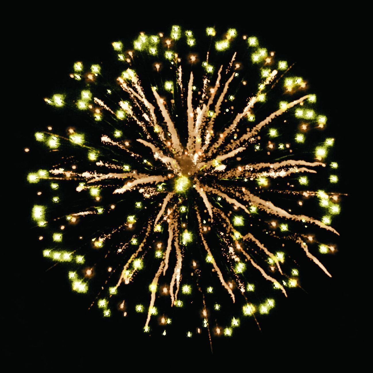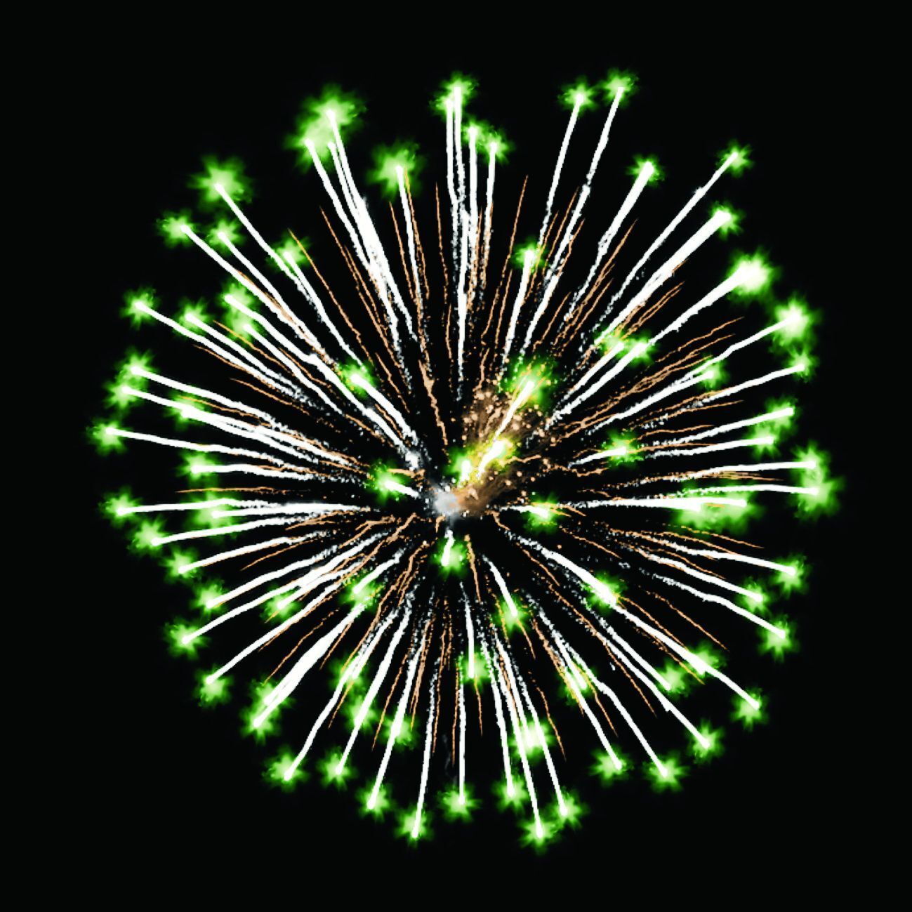 "Скоро всё случится...!"Цветовая палитра этого двухуровневого веерного фейерверка от "Русской пиротехники" поражает своим разнообразием и красотой. Яркие красные, золотистые и оранжевые оттенки создают ощущение тепла и праздничности, а глубокие синие и фиолетовые цвета придают небу загадочность и магическую атмосферу.Эффекты (изображены на картинке):Нижний уровень. Букеты из золотых трасс, синих и трещащих огоньков.Верхний уровень.Разноцветные кометы, золотые с мерцающими красными, зелёными, золотыми искрами трассы разрываются сферами из:1. крупных красных, крупных зелёных и белых мерцающих огней;2-3. фиолетовых, синих, голубых, оранжевых и мерцающих зелёных, золотых огней;4-6. серебряных форсов с голубыми, зелёными, красными огнями на концах и синих, трещащих,зелёных огней;7. серебряных форсов с зелёными огнями на концах, фиолетовых огней и множества трещащих разлетающихся искр;8-10. золотых форсов с мерцающими красными, зелёными, золотыми искрами и синих, фиолетовых, жёлтых огней;11. крупных красных огней;12-13. мерцающих красных, зелёных огней с серебряными форсами в центре;14-15. серебряных форсов, серебряных искристых форсов;16. серебряных форсов с серебряными трещащими искрами;17-18. серебряных форсов и жёлтых, голубых огней.19-21. Веер: красные, зелёные кометы, букеты из красных, зелёных, серебряных мерцающихогоньков, золотых искристых форсов.22. Веер: короткие искристые трещащие форсы.23. Веер: сферы из золотых форсов с красными мерцающими искрами; серебряных форсов и зелёных мерцающих огней.24. Веер: серебряные с трещащими искрами форсы, сферы их золотых форсов и голубых огней.25. Множество трещащих серебряных сфер.26. Сферы из золотых форсов (2 залпа).