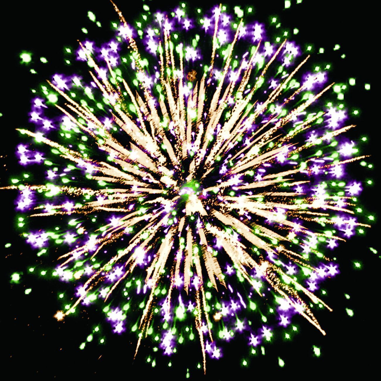 1-2. Золотых искристых форсов, красных, фиолетовых и мерцающих белых, зелёных огней;