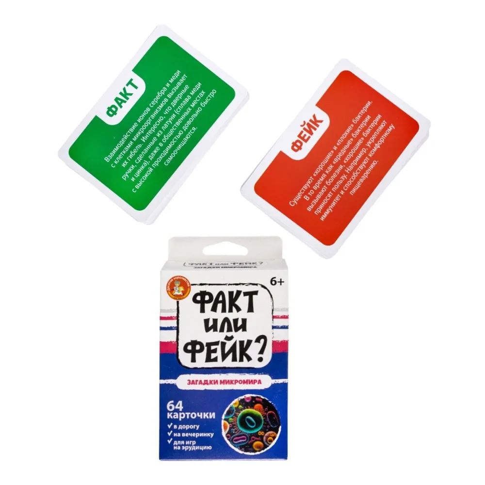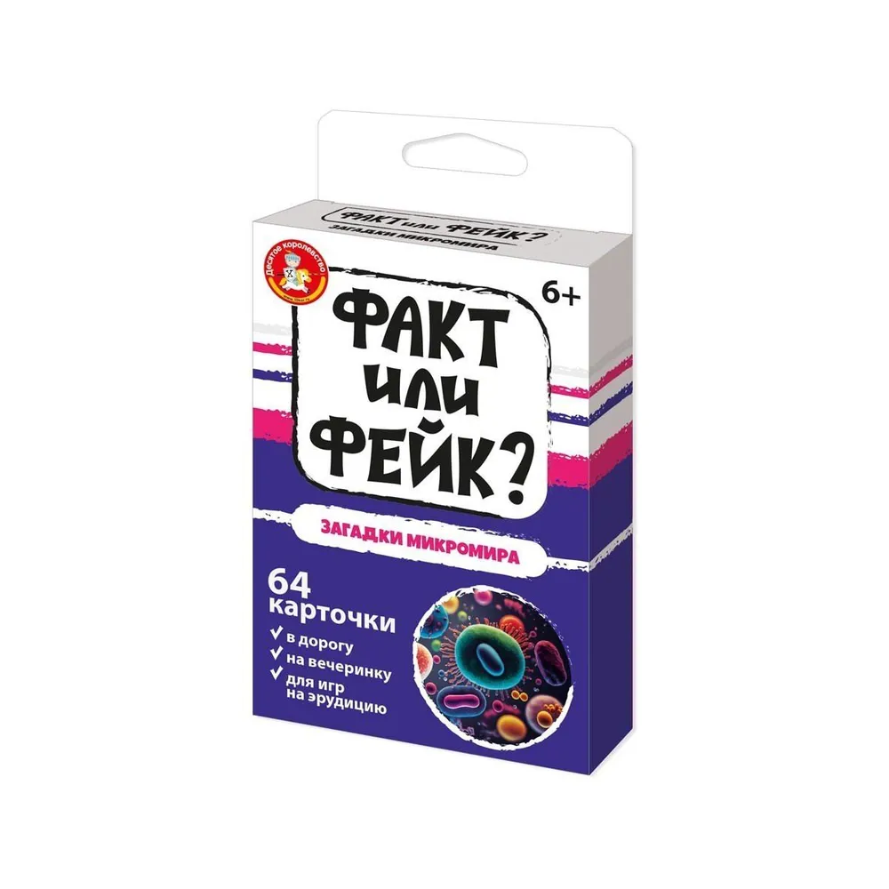 Детская настольная игра для большой компании Факт или Фейк «Загадки микромира» - это увлекательная игра в "походном" формате, которую можно взять с собой на вечеринку, в гости или в дорогу. С этой игрой вы можете проверить свой уровень знаний и интересно провести время в кругу друзей.