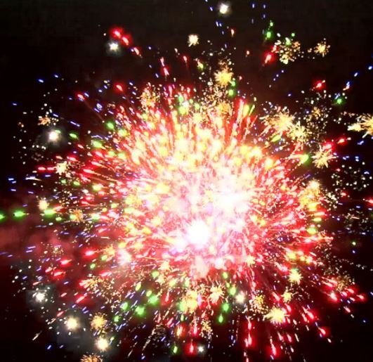 1. Разноцветные кометы, золотые трассы разрываются сферами.