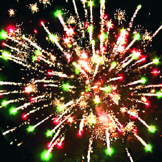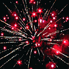 - Красно-зеленые звезды с пышными хвостами (кокос) и треск.