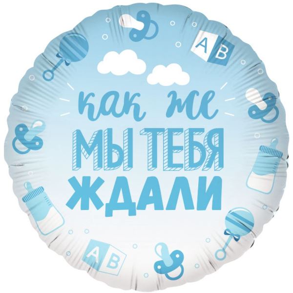 Шар Фольгированный Круг "В Ожидании Чуда" Голубой,Градиент, 18'' с гелием